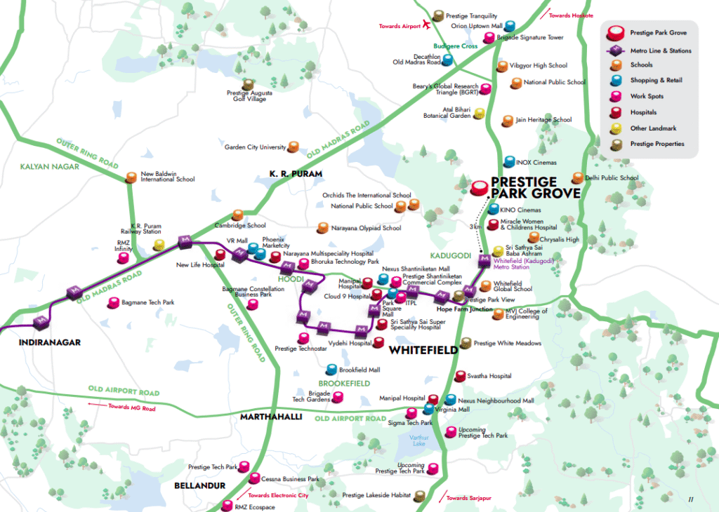 Prestige Park Grove in Whitefield, Bangalore, is a 72-acre township offering 1-4 BHK apartments & villas with 80% open space, world-class amenities, and 2027 possession.